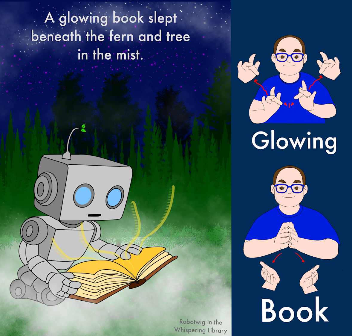 Robotwig in the Whispering Library is a story about a Deaf robot who discovers a hidden world where stories are seen, felt, and signed.